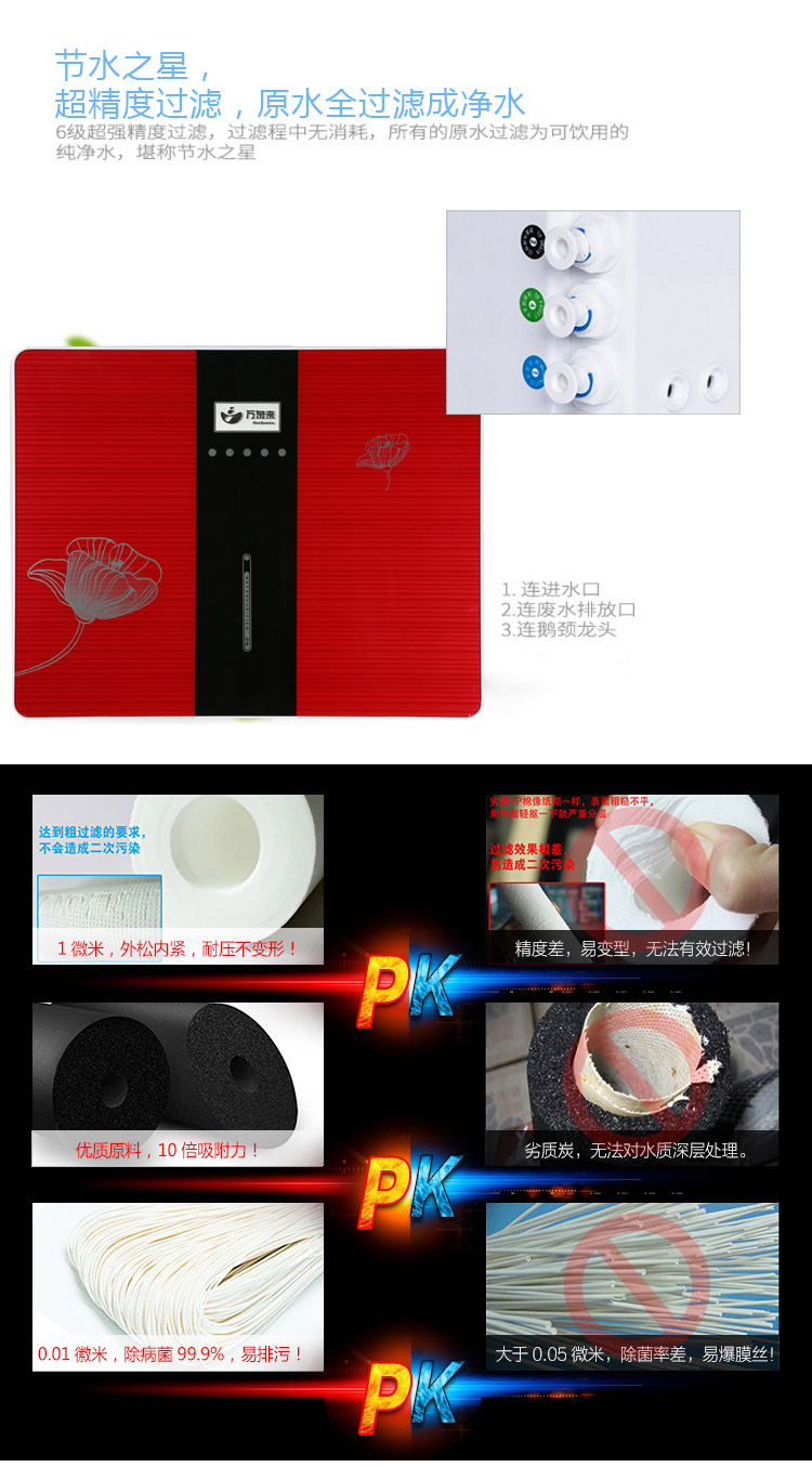功能(néng):采用(yòng)現(xiàn)代過濾新技(jì)術(shù)—中空(kōng)纖維超過濾技(jì)術(shù),濃縮和(hé)分(fē✔n)離(lí)自(zì)來(lái)水(shuǐ)中的(de)大(dà)分(fēn)子(zǐ)物(wù)質或膠體(tǐ)物(¶wù)質,過濾精度為(wèi)0.01微(wēi)米,能(néng)高(gāo)效去(qù)除水(shuǐ)中的(de)大(dà)分(fēn)子(zǐ)的♥(de)超微(wēi)粒子(zǐ)、熱(rè)源體(tǐ)、病毒、細菌(大(dà)腸杆菌、霍亂菌、痢疾菌等),有(yǒu)效的(d≠e)去(qù)除細菌達99.9%,徹底清除高(gāo)分(fēn)子(zǐ)、有(yǒu)機(jī)物(wù)、更深層次降低(dī)濁度、使飲水(shuǐ)更衛生(shēng≤)、更安全。