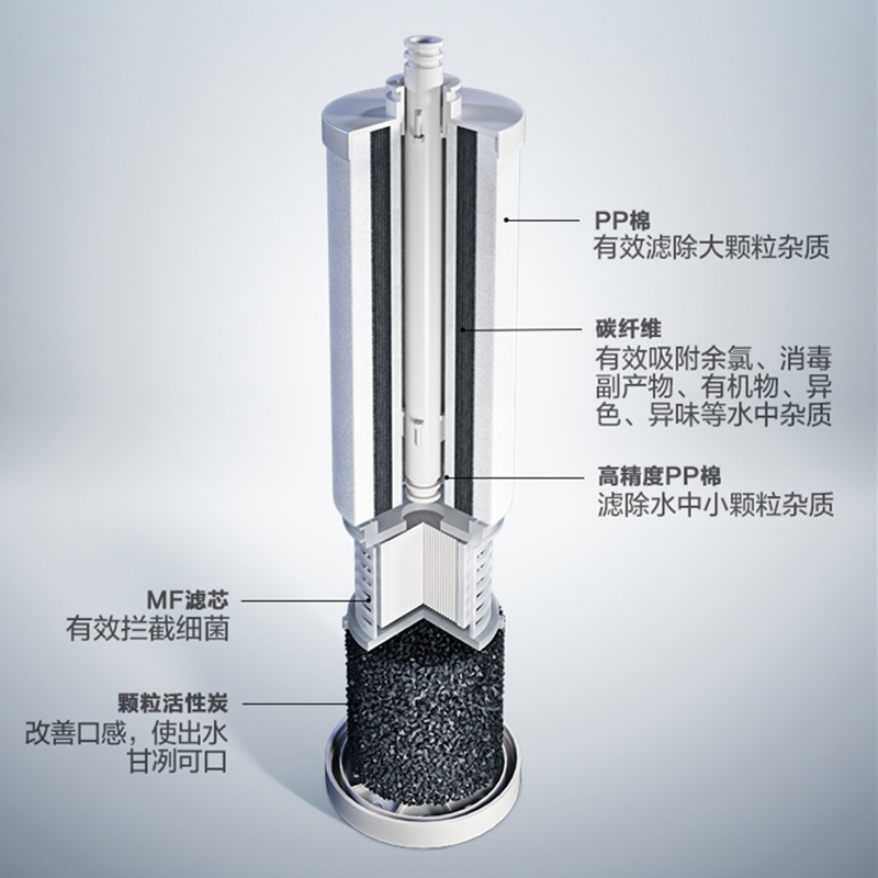 ③MF濾芯,用(yòng)以攔截細菌病毒等