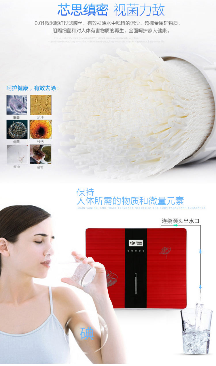 功能(néng):采用(yòng)現(xiàn)代過濾新技(jì)術(shù)—中空(kōng)纖維超過濾技(jì)術(shù),濃縮和(hé)分(fē✔n)離(lí)自(zì)來(lái)水(shuǐ)中的(de)大(dà)分(fēn)子(zǐ)物(wù)質或膠體(tǐ)物(¶wù)質,過濾精度為(wèi)0.01微(wēi)米,能(néng)高(gāo)效去(qù)除水(shuǐ)中的(de)大(dà)分(fēn)子(zǐ)的♥(de)超微(wēi)粒子(zǐ)、熱(rè)源體(tǐ)、病毒、細菌(大(dà)腸杆菌、霍亂菌、痢疾菌等),有(yǒu)效的(d≠e)去(qù)除細菌達99.9%,徹底清除高(gāo)分(fēn)子(zǐ)、有(yǒu)機(jī)物(wù)、更深層次降低(dī)濁度、使飲水(shuǐ)更衛生(shēng≤)、更安全。
